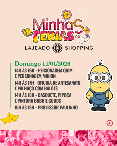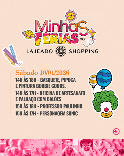 Chama todo mundo para o Lajeado Shopping! 🏀🎨🎭🎼
